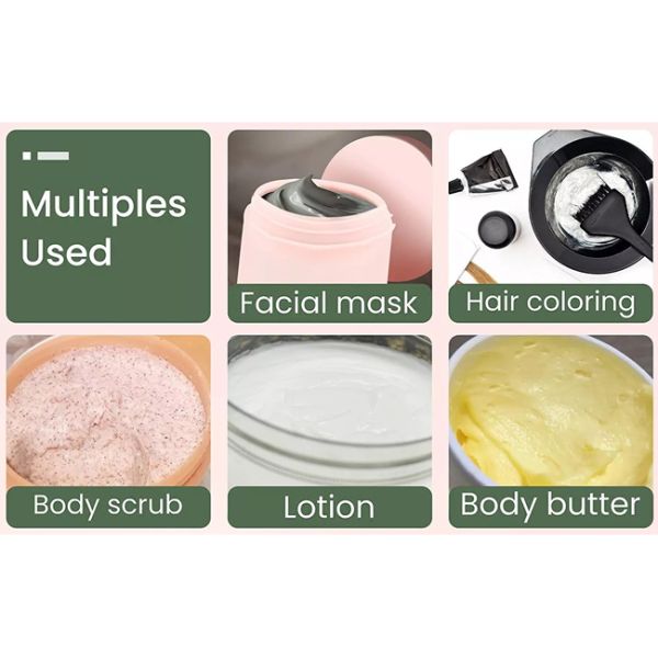 Usage : Face cream, eye cream, clay, mask, powder, skincare jar, body scrub, shea butter